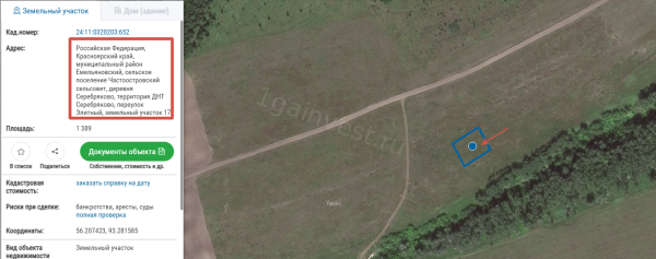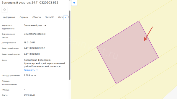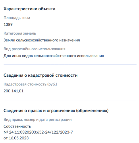 Земельный участок, виды разрешенного использования: дачное строительство, площадь 13,8 соток, кадастровый номер 24:11:0320203:652.