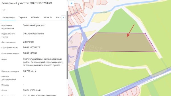 Земельный участок Кадастровый номер: 90:01:100701:79. Площадь: 3,6 гектар. Виды разрешенного использования объекта недвижимости: сельскохозяйственное использование.